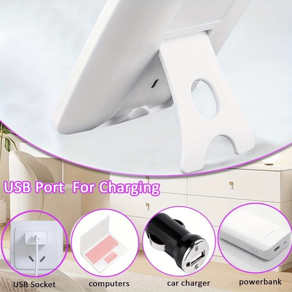 Perfect for travel and home use, our LED Makeup Mirror features 3-color lighting modes, 3-level brightness adjustment, and a portable folding design. USB rechargeable with a 400mAh battery for cordless convenience.